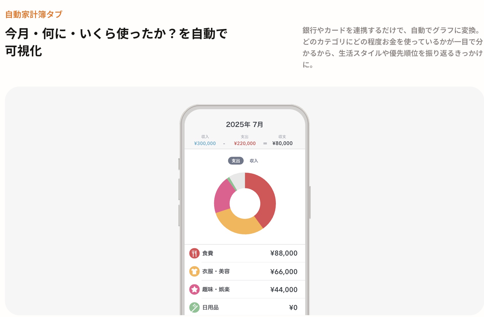 - 家計管理はアプリにおまかせ(手書き不要・自動記録)